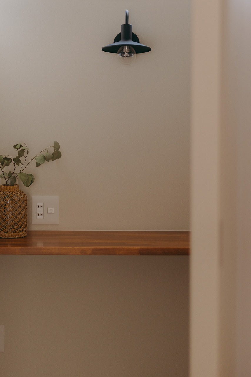 仕事や読書に集中したいとき、少し気持ちを切り替えたいときにちょうどいいおこもり空間。ひとり時間を大切にしたい夫婦にも、将来のワークスペースとしても柔軟に使えます。