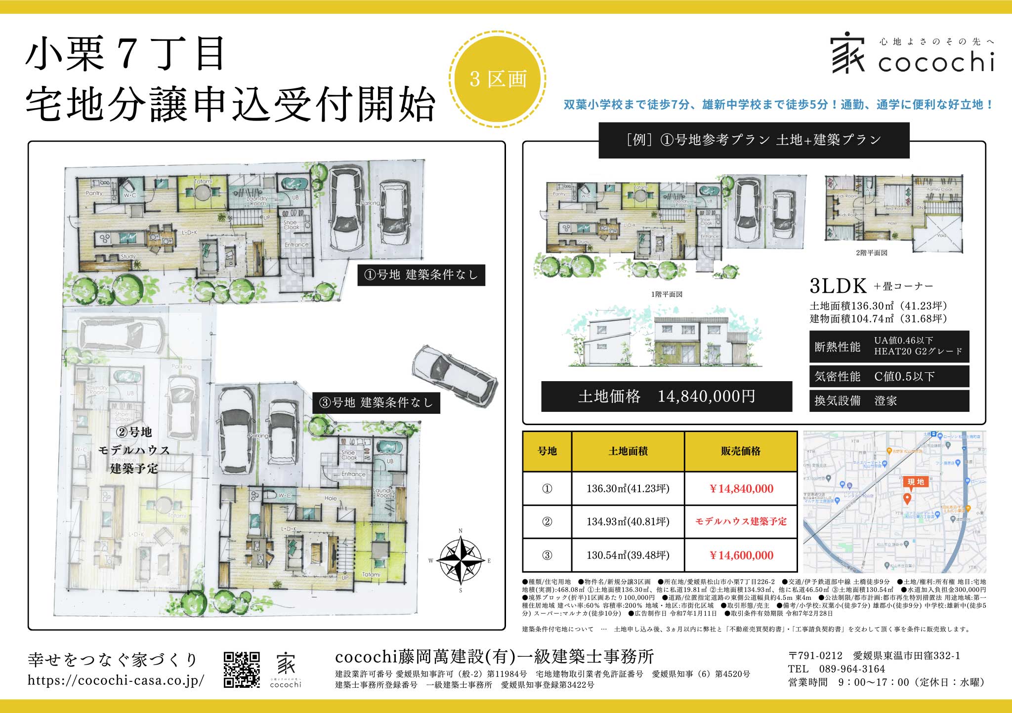 | 1 | 136.30㎡(41.23坪) | ¥14,840,000- | +水道負担金30万円 |