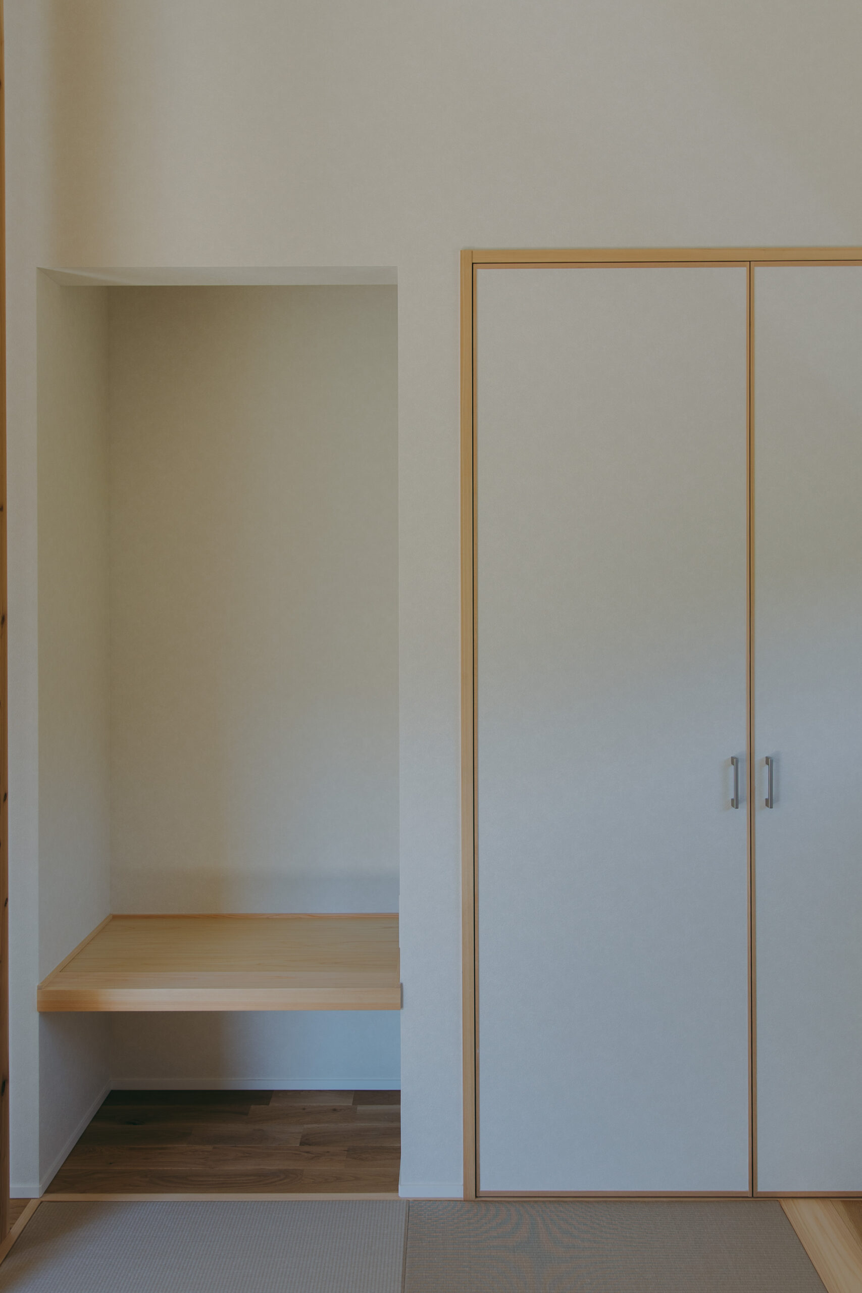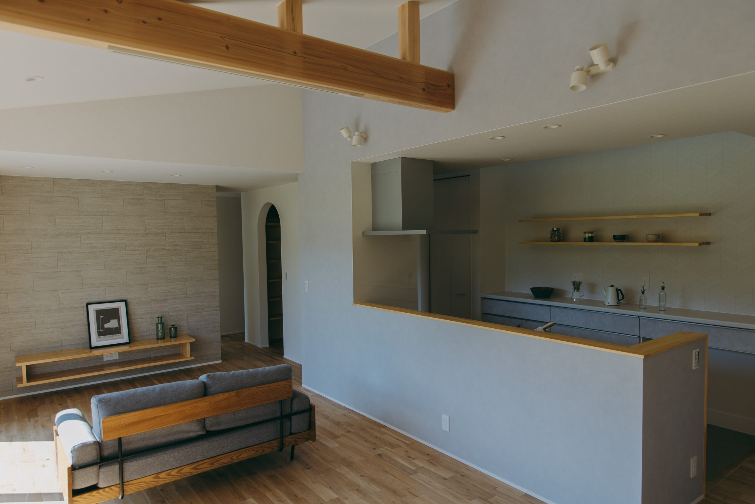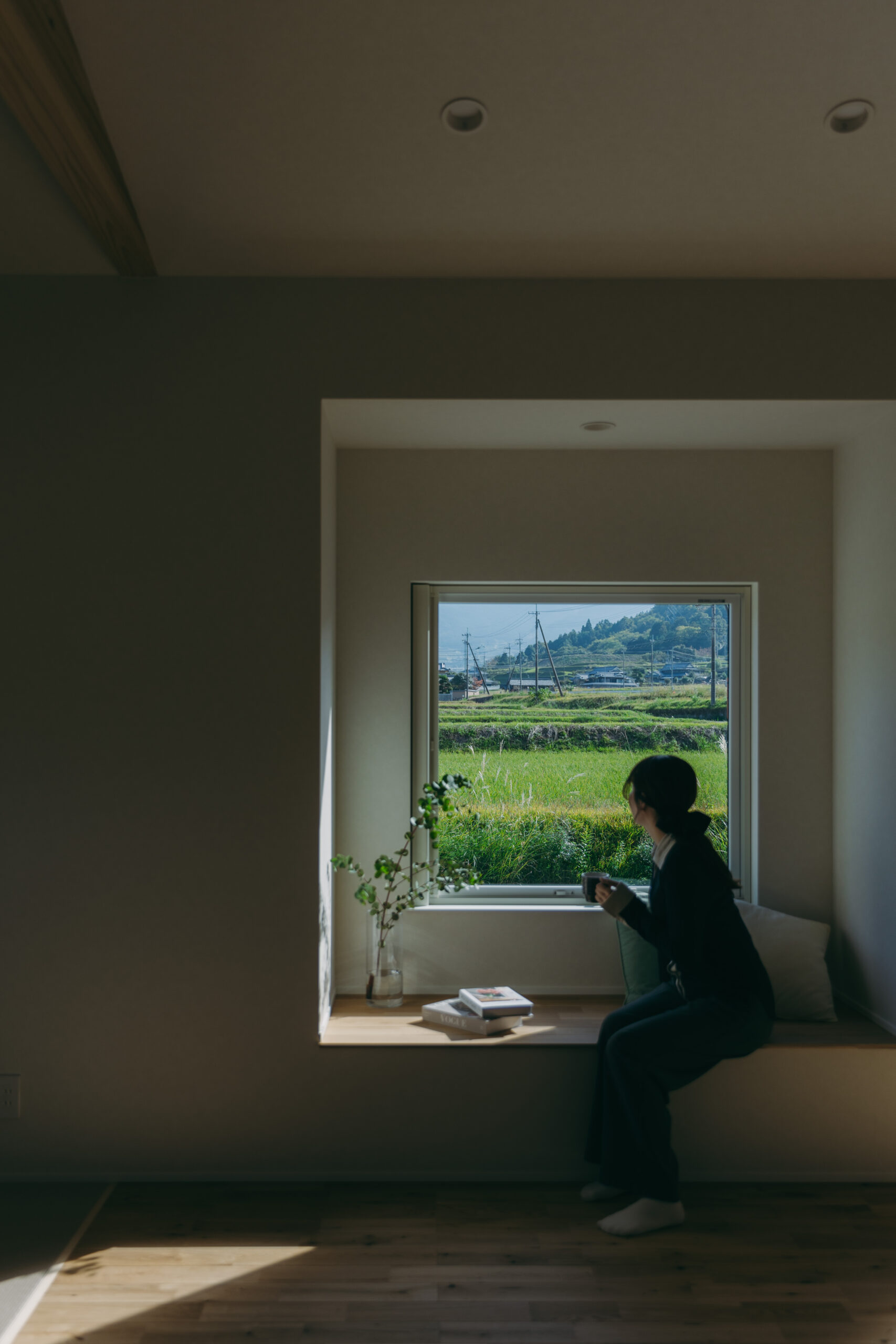 田園風景に囲まれた、のどかな土地に寄り添う平屋。風の音、陽のぬくもり、季節で変わる色彩。外の景色にそっと調和しながら、家族と過ごす時間が穏やかに流れる。LDKに面した南側の窓には、外の景色を楽しめるヌックを。やわらかな光に包まれながら、本を読んだり、コーヒーを楽しんだり。外に出なくても、自然とつながれる特別なひとときを感じられる。勾配天井が生み出す開放感あふれるLDKは、光と風が心地よく巡り、家族の会話や時間がゆったり流れる場所に。キッチンはアイランド型を採用し、家族と向き合いながら料理ができる楽しさをプラス。回遊できる動線で、配膳や片付けもスムーズに。玄関横のシューズクロークは、アウトドア用品や子どもの遊具もしっかり収まる頼もしさ。家族の趣味や生活スタイルに合わせて、いつでも整った空間を保てる。さらに、こもれるワークスペースが家の中に小さな“自分時間”をつくり出す。家族が一緒にいても、それぞれの過ごし方を尊重できる安心感。忙しさを忘れて、ゆっくりと深呼吸できる平屋が完成。